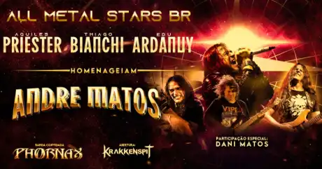 O evento “All Metal Stars BR” é uma turnê em homenagem a Andre Matos, um dos maiores vocalistas da história do heavy metal brasileiro. A turnê contará com a presença de Aquiles Priester, Edu Ardanuy e Thiago Bianchi, com participação especial de Dani Matos, irmão de Andre e atual baixista do Viper. Esta celebração irá reunir grandes nomes da música pesada nacional, prometendo um espetáculo inesquecível.