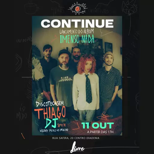 CONTINUE + THIAGO DJ – Imenso Nada Data: 11 de Outubro de 2025 Horário: Das 17h às 23h Local: Nova