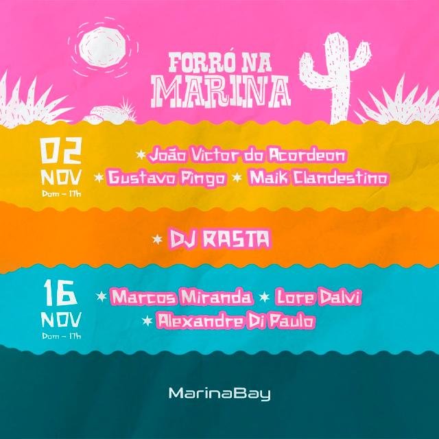 Forró na Marina Vix – 02/11 Data: Domingo, 02 de Novembro de 2025 Abertura: 17:00 Local: Marina Bay Vix, R.
