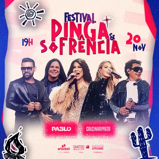 FESTIVAL PINGA & SOFRÊNCIA Data: 20/11/2025 a 21/11/2025 Horário: 19:00 – 04:00 Local: Santos Convention Center COMPRAR AGORA Ingressos Bistrô