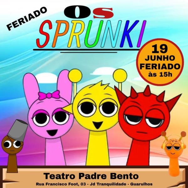 OS SPRUNKIS NO TEATRO Ingressos disponíveis para a apresentação de Os Sprunkis no Teatro. O evento ocorrerá no Teatro Padre