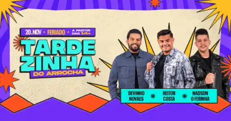 Tardezinha do Arrocha com Devinho Novaes, Nadson O Ferinha e Heitor Costa Data: 20 de novembro de 2025 (Quinta-Feira) Abertura: